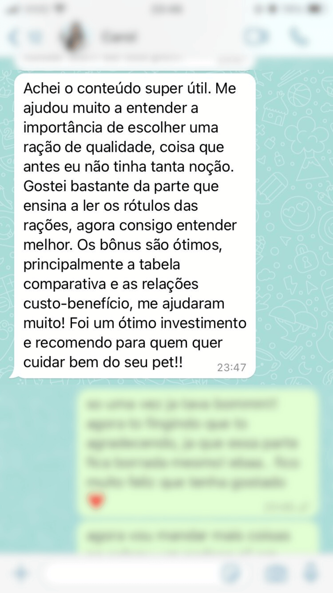 Sou médica veterinária, graduada em 2021 pelo Centro Universitário de Belo Horizonte. Eu decidi criar este material para te ajudar a não mais ser enganado pela indústria de rações.